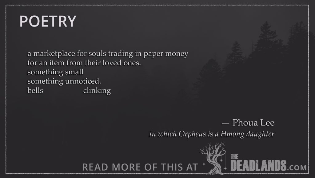 in which Orpheus is a Hmong daughter Phoua Lee a marketplace for souls trading in paper moneyfor an item from their loved ones. something […]