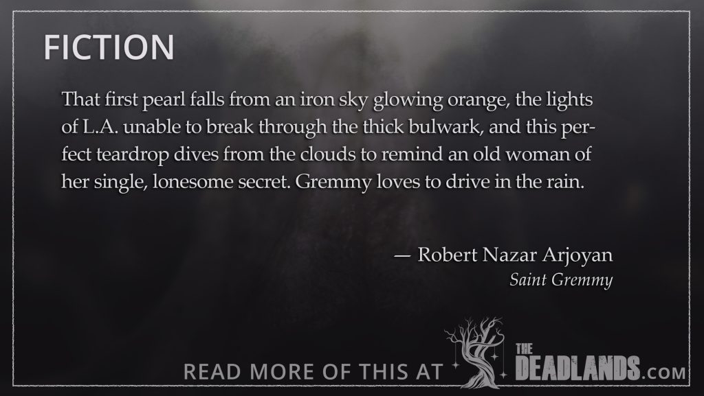 Saint Gremmy Robert Nazar Arjoyan That first pearl falls from an iron sky glowing orange, the lights of L.A. unable to break through the thick […]