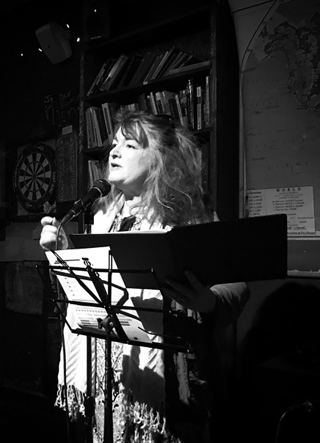 Like heat shimmer, SIS matter-streams onto the stool beside Cee-Cee. Sis’s form is a pulsing geometry: brassy, shining, tessellated, and tacky — then incarnates a hint of her form: five-foot-six, tracksuit, sunglasses, freckles.
